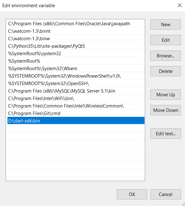 Step - 4: After the download is completed, set the PATH environment variable to "C:\Program Files\Dart\dart-sdk\bin" in advance system properties.