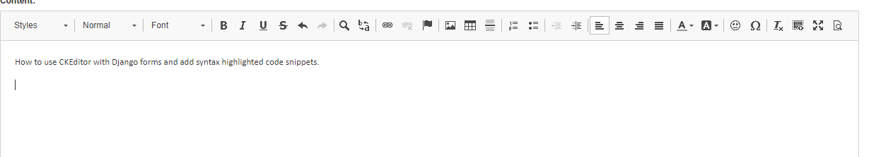 How to use CKEditor with Django forms and add syntax highlighted code snippets.